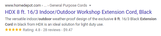 Generally, you’ll stick to long-tail keywords, which contain three or more words, to ensure you’re driving the most relevant traffic. Someone who searches “8ft outdoor extension cord” is a better lead than someone who searches “cord.”